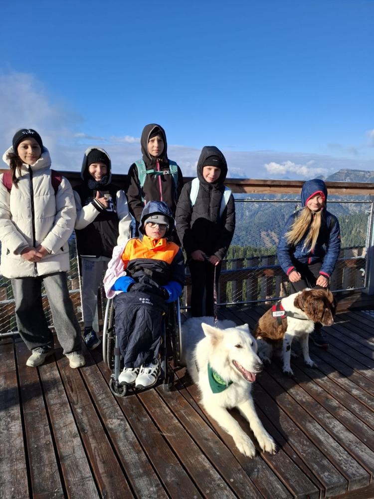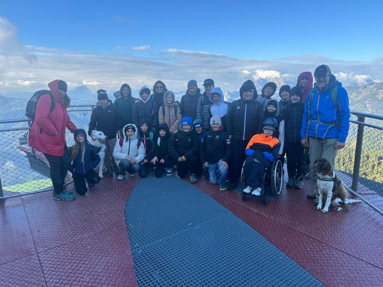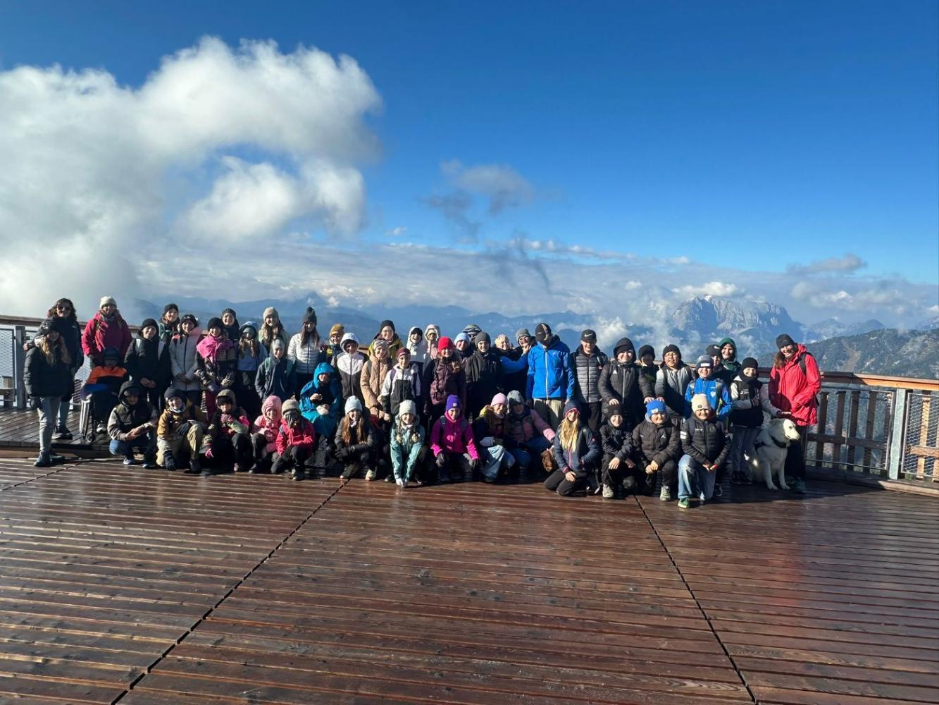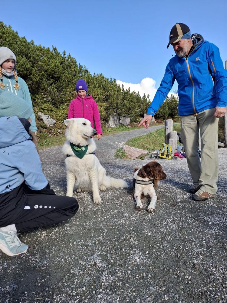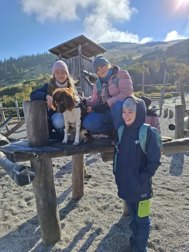 Zum Abschluss dieser gemeinsamen Zeit wurden die Kinder, ihre LehrerInnen, die HundeführerInnen sowie die beiden Hunde zu einem Ausflug auf die Steinplatte eingeladen. Mit dem Bus ging es nach Waidring, und von der Talstation aus brachte die Gondel die Gruppe bequem hinauf auf den Berg.
