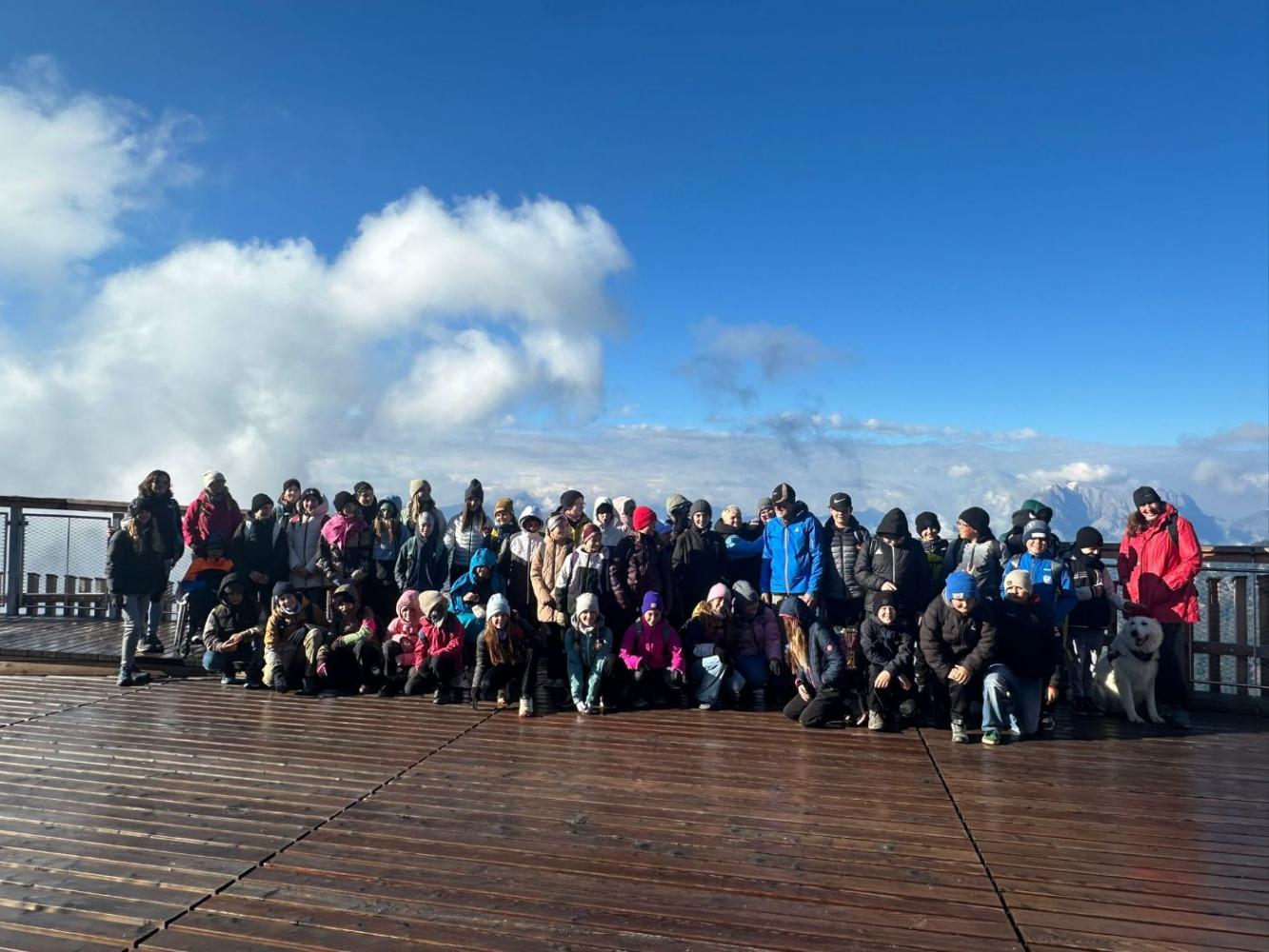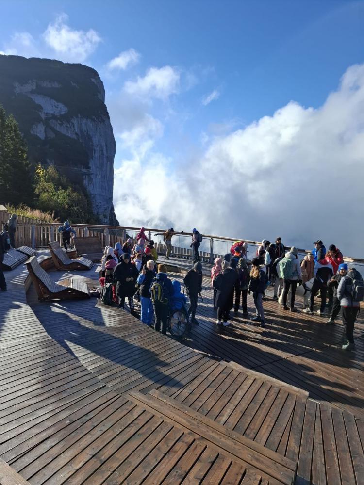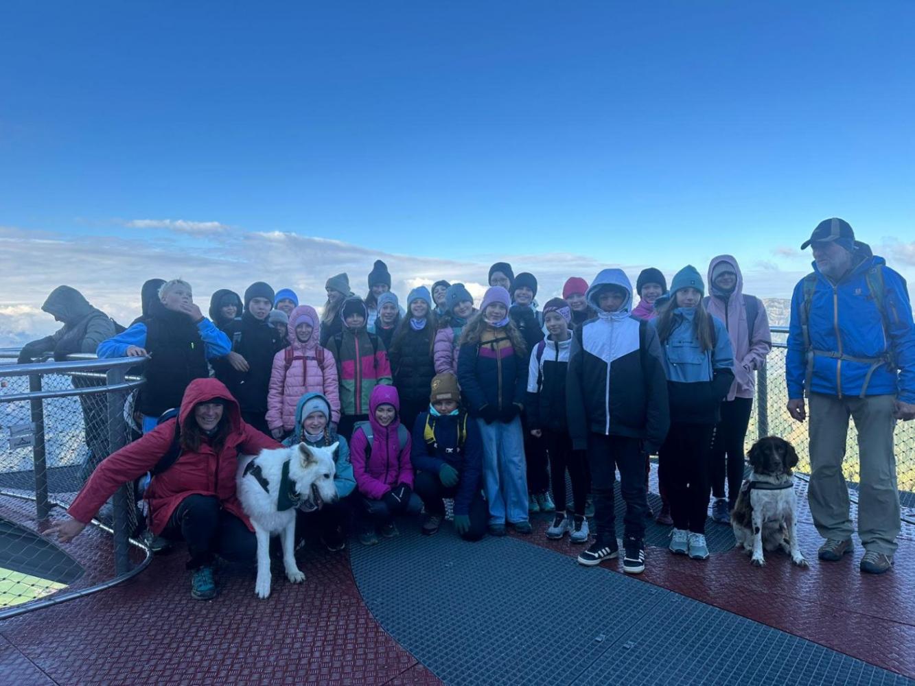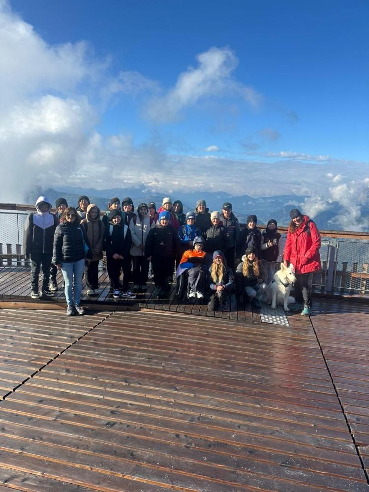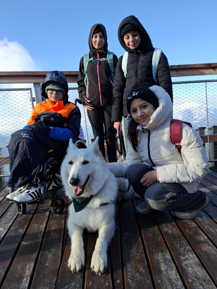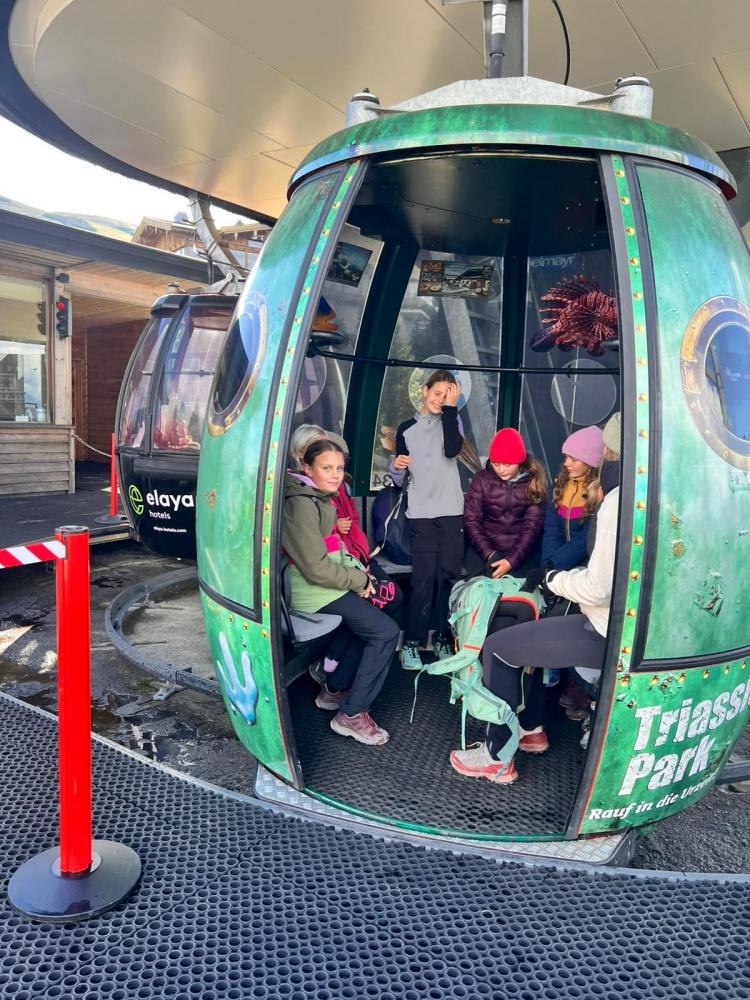 Zum Abschluss dieser gemeinsamen Zeit wurden die Kinder, ihre LehrerInnen, die HundeführerInnen sowie die beiden Hunde zu einem Ausflug auf die Steinplatte eingeladen. Mit dem Bus ging es nach Waidring, und von der Talstation aus brachte die Gondel die Gruppe bequem hinauf auf den Berg.