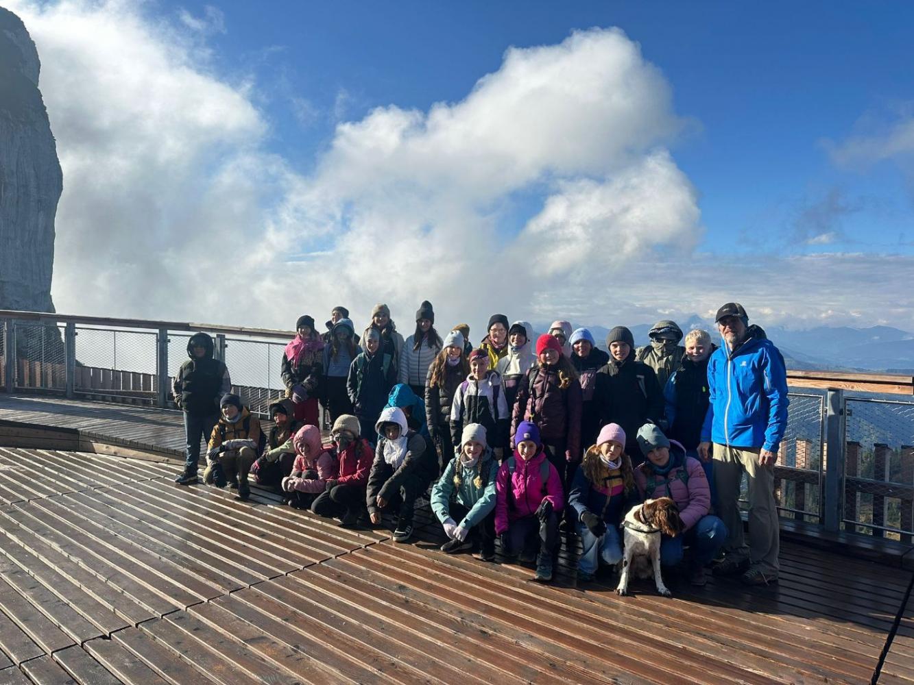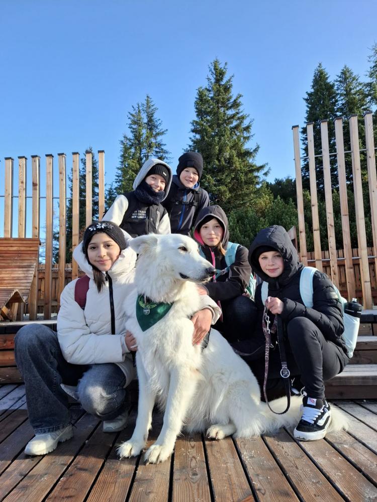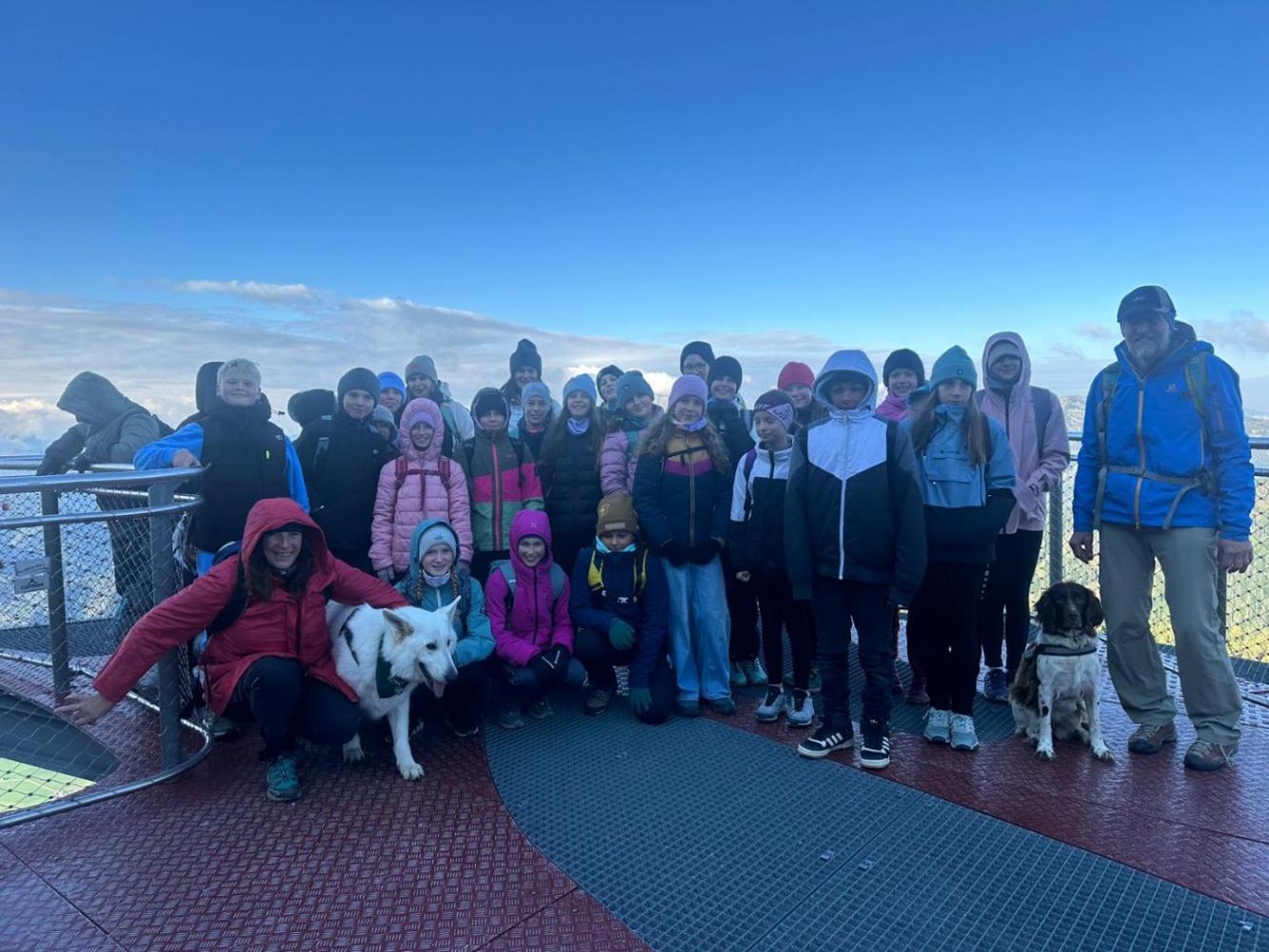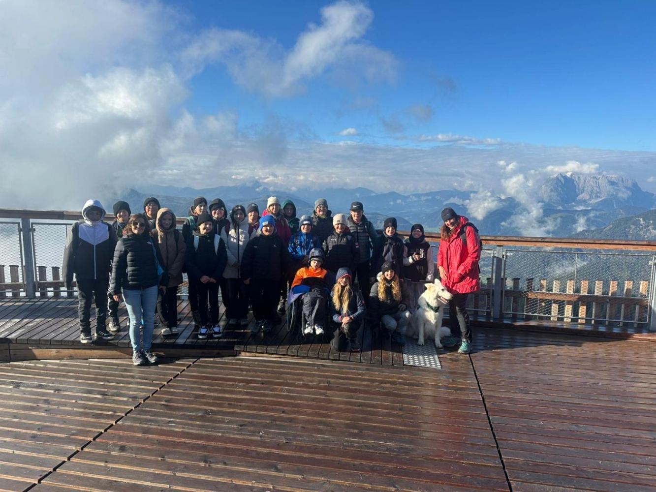 Zum Abschluss dieser gemeinsamen Zeit wurden die Kinder, ihre LehrerInnen, die HundeführerInnen sowie die beiden Hunde zu einem Ausflug auf die Steinplatte eingeladen. Mit dem Bus ging es nach Waidring, und von der Talstation aus brachte die Gondel die Gruppe bequem hinauf auf den Berg.