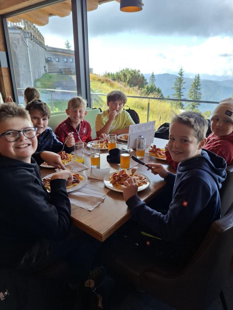 Den krönenden Abschluss bildete die Einkehr im Panoramarestaurant Kammerkör, wo alle mit Würstl und Pommes und einem Getränk verwöhnt wurden. Gestärkt und voller schöner Erinnerungen ging es anschließend mit der Gondel wieder ins Tal.