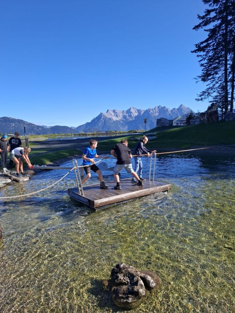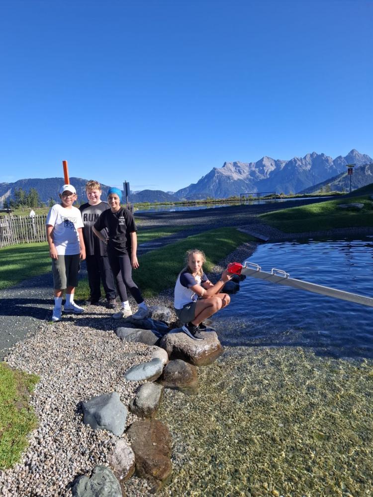Der erste Wandertag führte die Klassen 2B und 2C auf die Timoks Alm. Nach der Zugfahrt nach Fieberbrunn wanderten die SchülerInnen gemeinsam zur Bergbahn und mit der Gondel Streuböden ging es bequem zur Mittelstation.