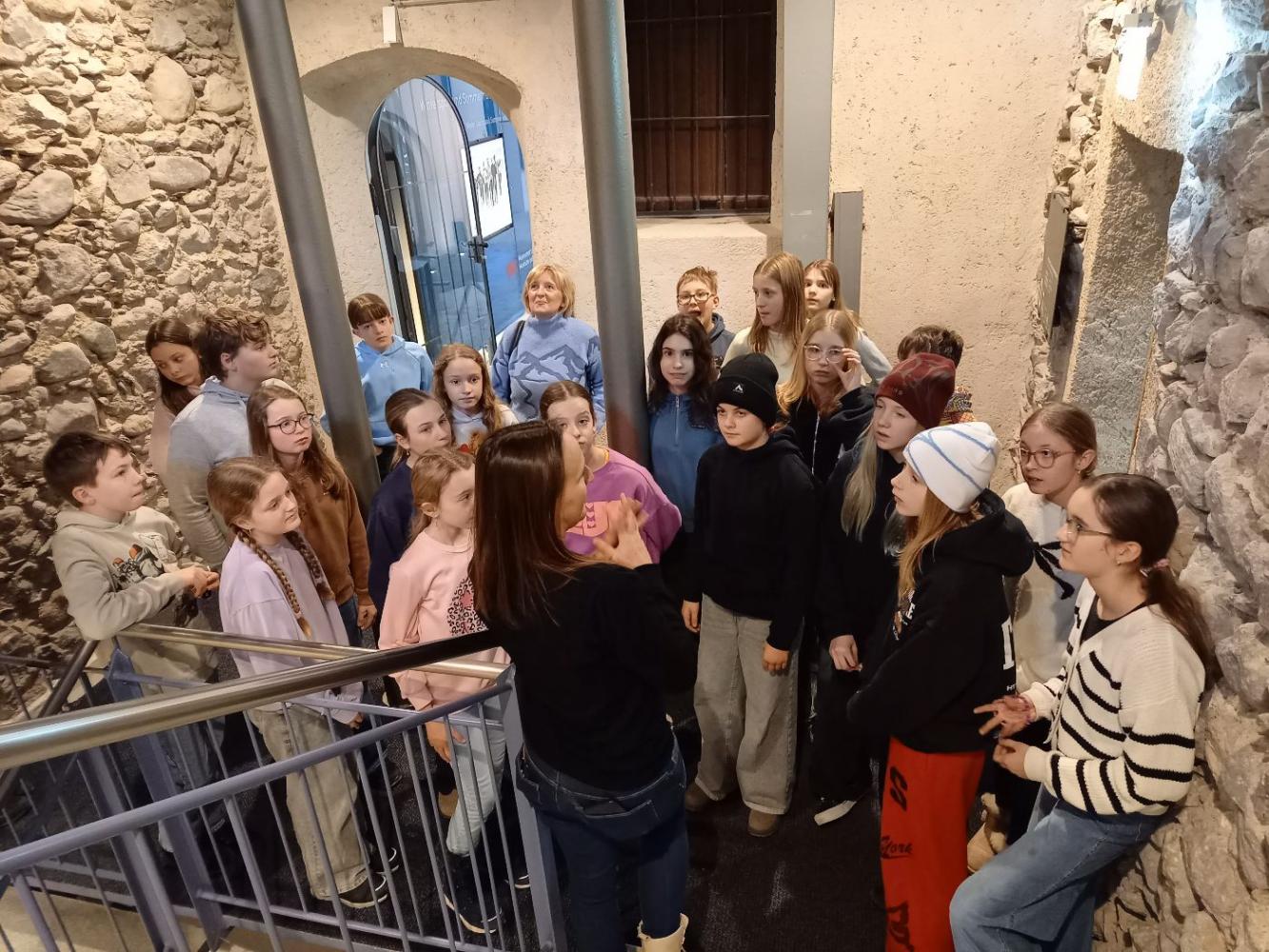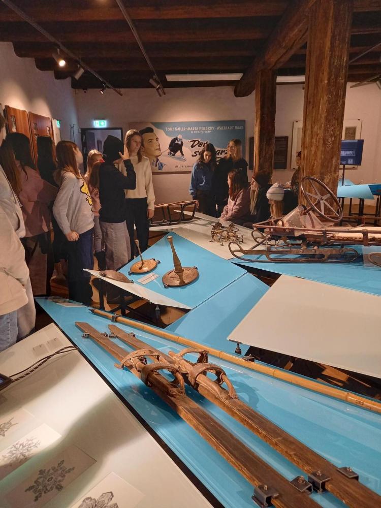 Nach einer Pause und einem kleinen Mittagessen ging es weiter in das Heimatmuseum Kitzbühel. Es war spannend das Museum in unserer Bezirkshauptstadt kennenzulernen, Informationen über das Gebäude, die Bronzezeit, die ersten Sportgeräte zu erhalten sowie Bilder von Alfons Walde zu sehen.
