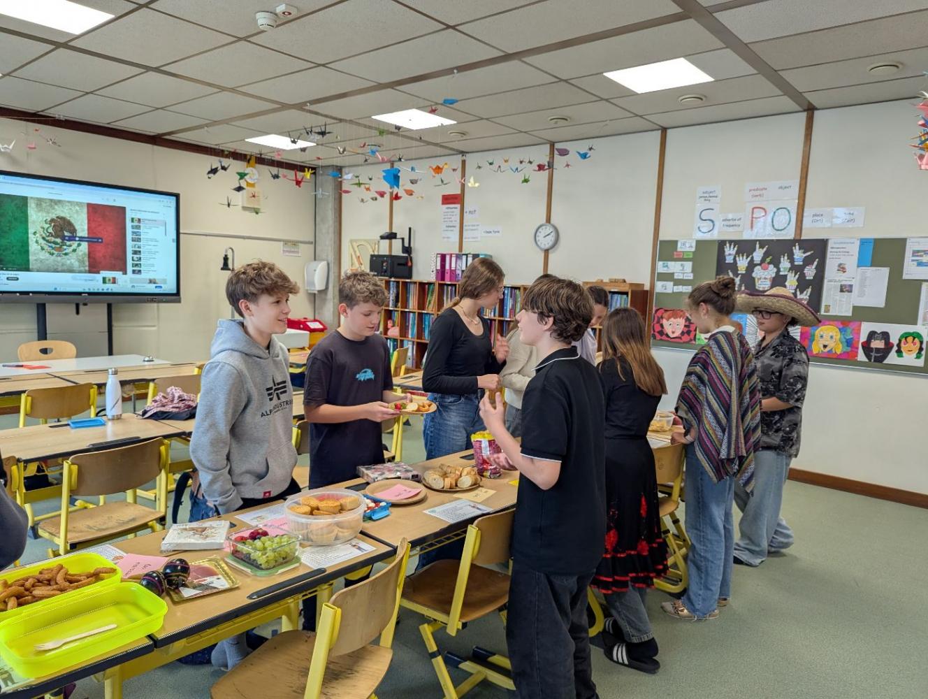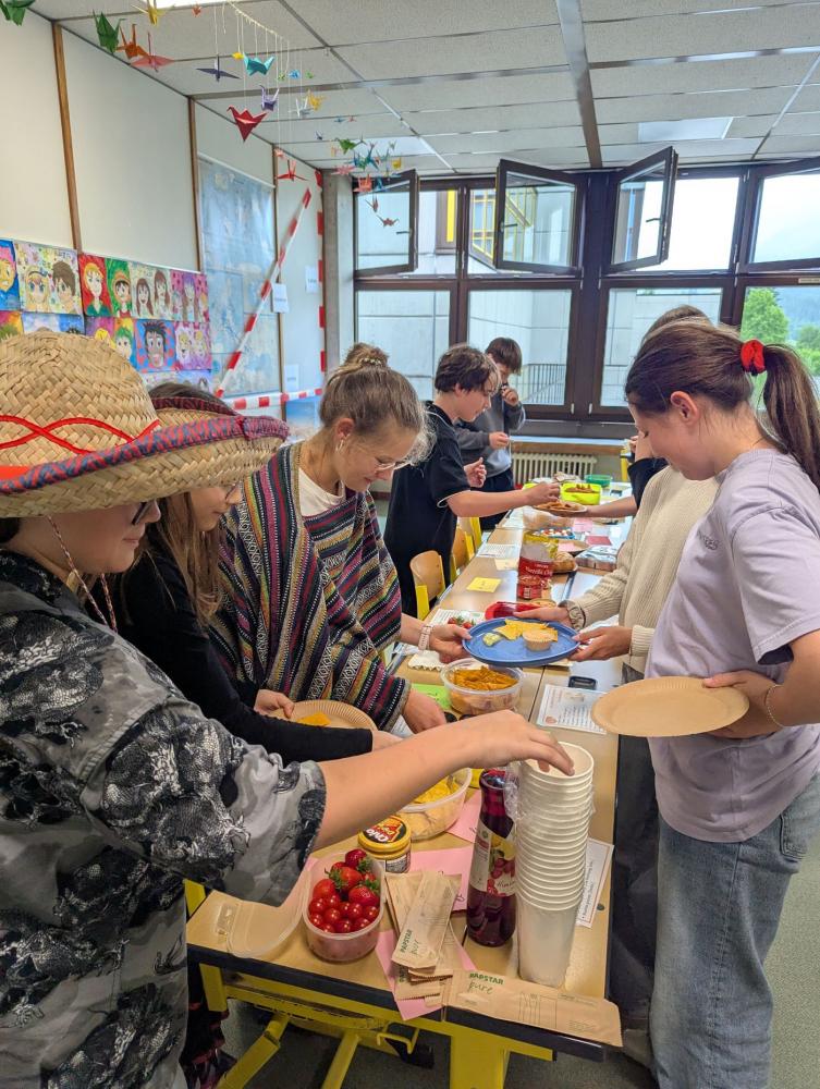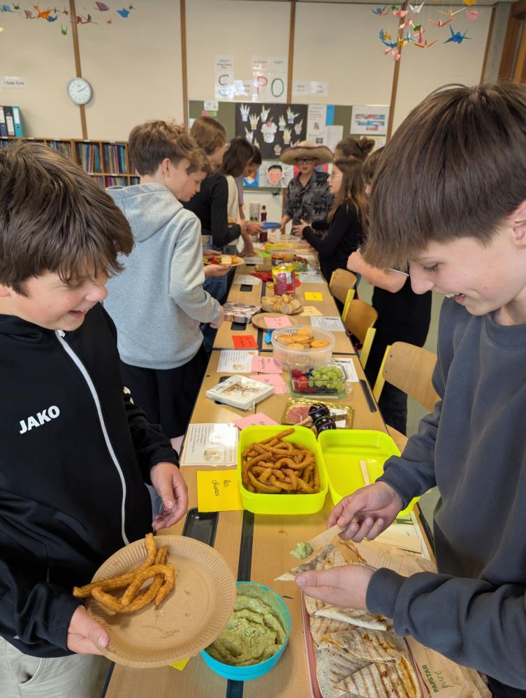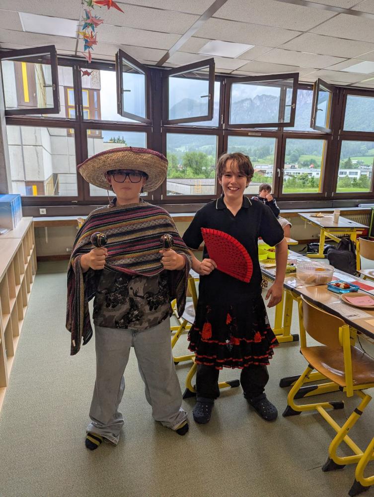 Zum Abschluss unserer letzten Spanischstunde verwandelte sich der Klassenraum in eine lebendige spanisch-mexikanische Tapasbar! Die Schüler:innen warfen sich in traditionelle Kleidung, deckten den Tisch mit selbstgemachten Gerichten und gestalteten gemeinsam eine kleine kulinarische Reise durch die spanischsprachige Welt.