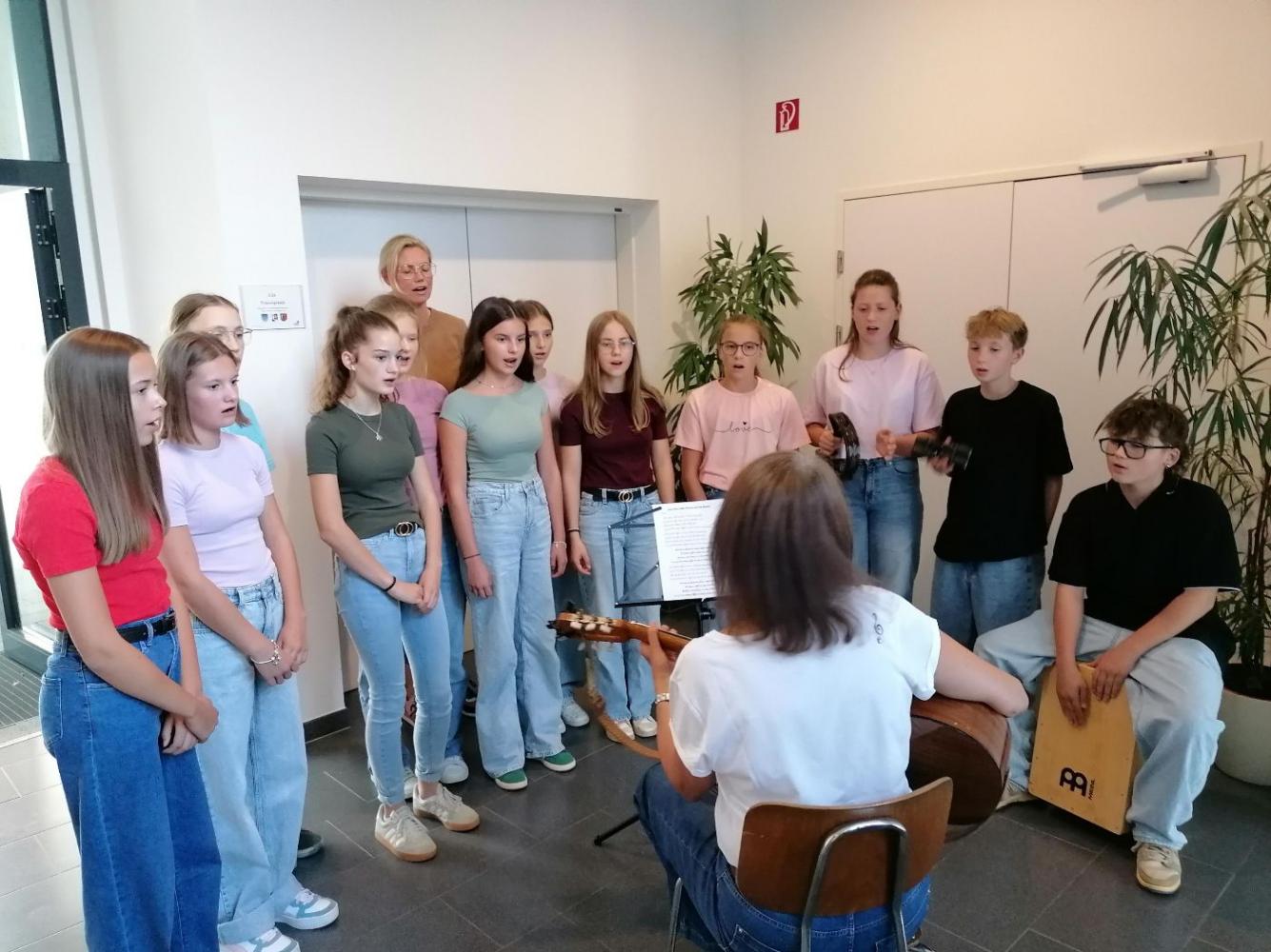 Für den feierlichen Rahmen sorgten ein musikalischer Beitrag unter der Leitung von Frau Polak und wertschätzende Worte von Herrn Peter Fischer sowie von Herrn Direktor Martin Kofler. Zum Abschluss wurden die Gäste noch kulinarisch verwöhnt, ebenso unterstützt und organisiert durch SchülerInnen der MS1.