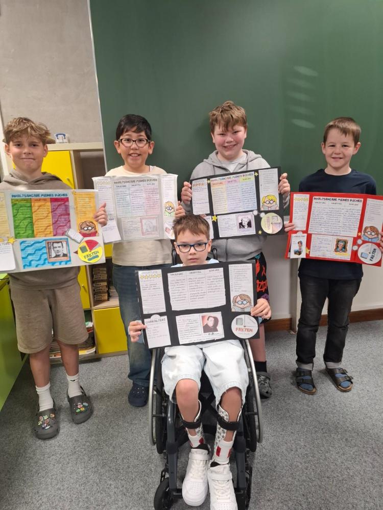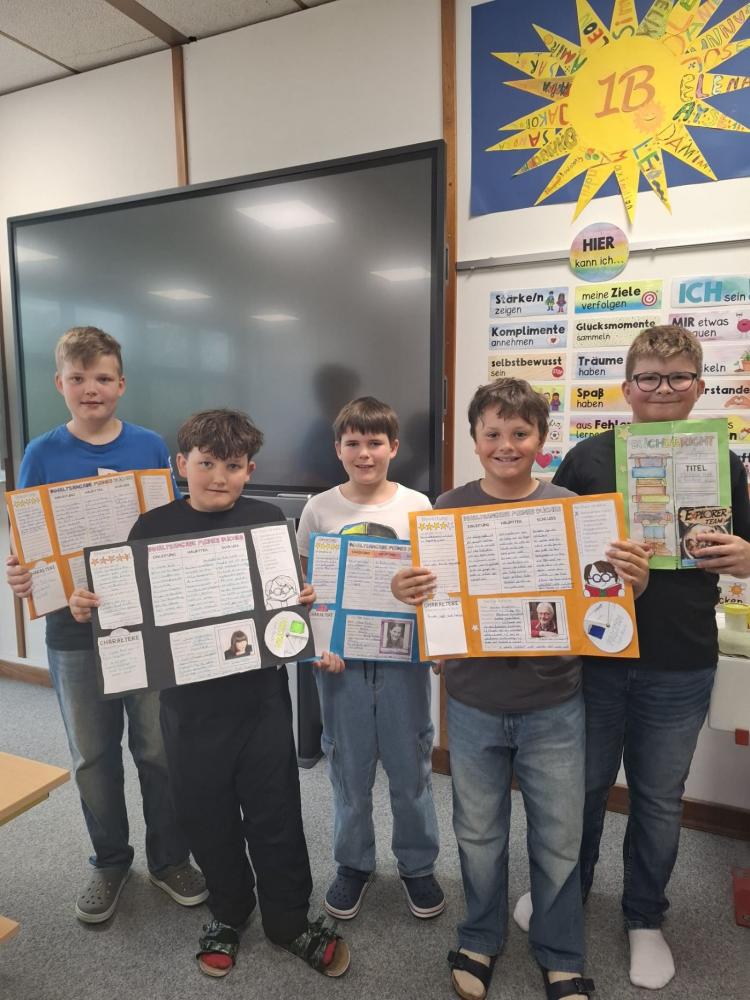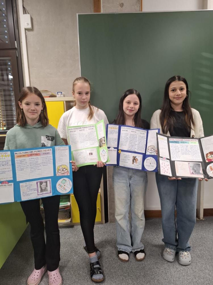 In den ersten Klassen präsentierten die Schülerinnen ihren Mitschülerinnen ein Buch und gestalteten dazu ein kreatives Lapbook. Mit diesem konnten die Schüler ihre Lektüren auf vielfältige Weise darstellen. Zu einer gelungenen Buchpräsentation gehört nicht nur die ansprechende Vorstellung des Inhalts, der Charaktere und der erzählerischen Elemente, sondern auch eine persönliche Meinung und Reflexion über das Buch, um das Publikum zu begeistern. Im Rahmen des Deutschunterrichts wurden die Lapbooks stolz präsentiert und sorgten für großes Aufsehen. Es war großartig zu sehen, wie sie mit Begeisterung über ihre ausgewählten Bücher sprachen und ihre Mitschüler*innen motivierten, ebenfalls zu lesen. Diese Präsentationen förderten nicht nur das Literaturverständnis, sondern stärkten auch die Präsentationsfähigkeiten und das Selbstbewusstsein der Schüler*innen