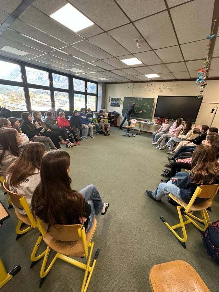 In einem zweistündigen Workshop zeigte der Moderator, Trainer für Stimme und Schauspieler Mag. Thomas Lackner anhand seiner praktischen Erfahrungen, wie man Texte, Geschichten und Gedichte geschickt vorbereitet und ausdrucksstark sowie spannend vorliest oder vorträgt. Den Schülern der 3D präsentierte er, wie man Texte strukturiert, mit Tempo, Betonungen und Pausen vorbereitet, Emotionen erzeugt, die Zuhörenden in eine Geschichte hineinzieht und als eigener Regisseur oder Regisseurin die verschiedenen Rollen einer Geschichte gestaltet. Mit Begeisterung wurde den Schülerinnen und Schülern vermittelt, wie sie ihre Präsenz steigern oder sich auf ihr nächstes Referat in der Klasse vorbereiten können. Denn wenn man packend und lebendig erzählt, bleiben Botschaften im Gedächtnis. Es war ein wirklich toller Vormittag.