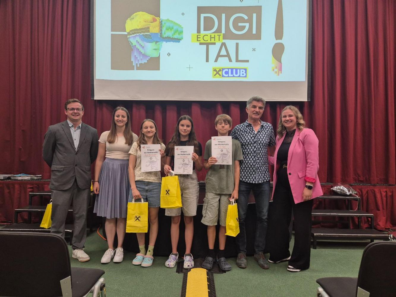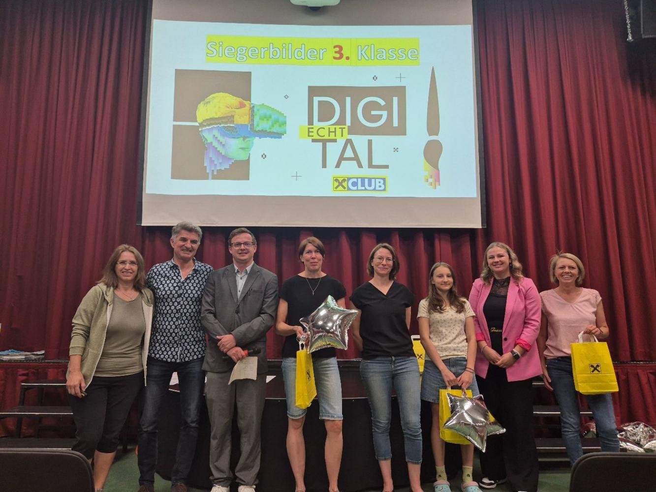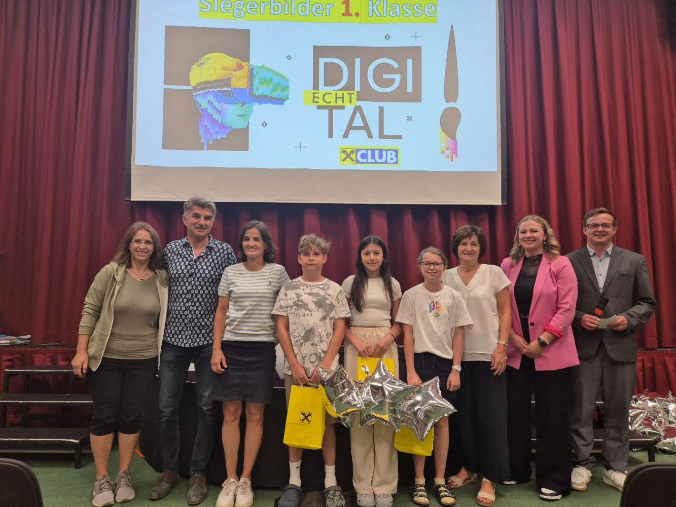 Am 26. Juni besuchten uns Philipp Aschacher und Victoria Sojer vom Jugendclub der Raiffeisenbank, um die Gewinnerinnen und Gewinner des diesjährigen Zeichenwettbewerbs zu ehren. Die Schülerinnen und Schüler gestalteten tolle Zeichnungen zum Thema “Echt Digital”.