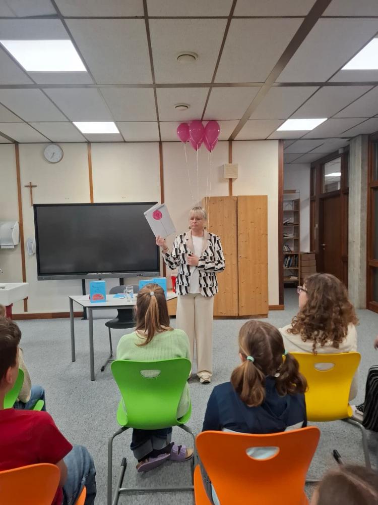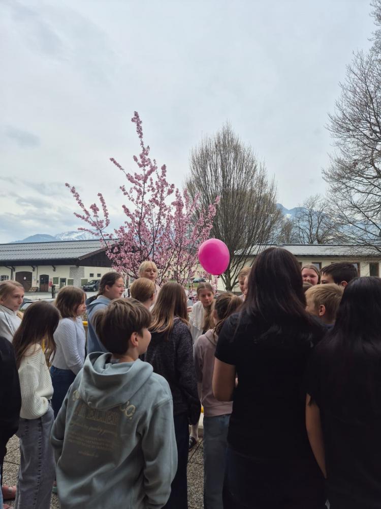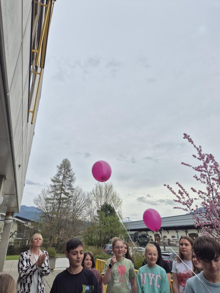 Ein Höhepunkt der Lesung war die Geschichte vom roten Luftballon. Zum Abschluss ließen sie gemeinsam den „kleinen Freund“, einen roten Luftballon, in den Himmel steigen und jeder schickte einen Wunsch mit.